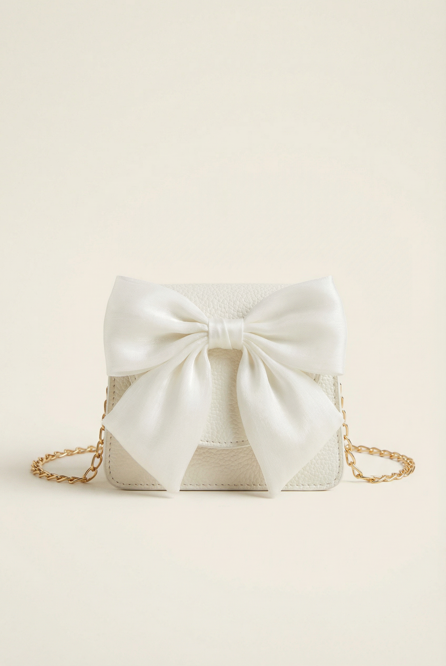 Borsetta Bianca Elegante con Fiocco e Catenella Dorata per Bambina