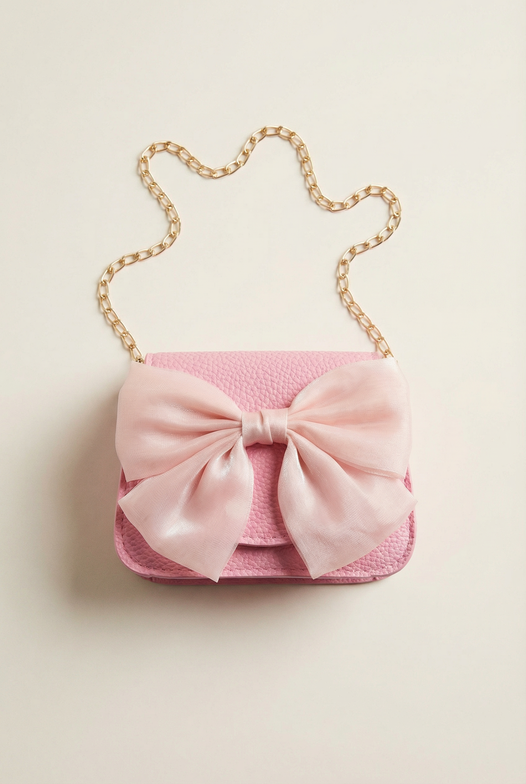 Borsetta Elegante Rosa con Fiocco e Catena Dorata per Bambina
