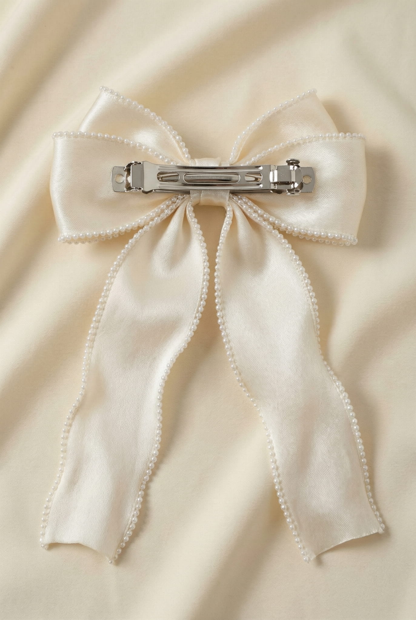 Fermaglio Elegante per Capelli con Fiocco in Organza e Perline